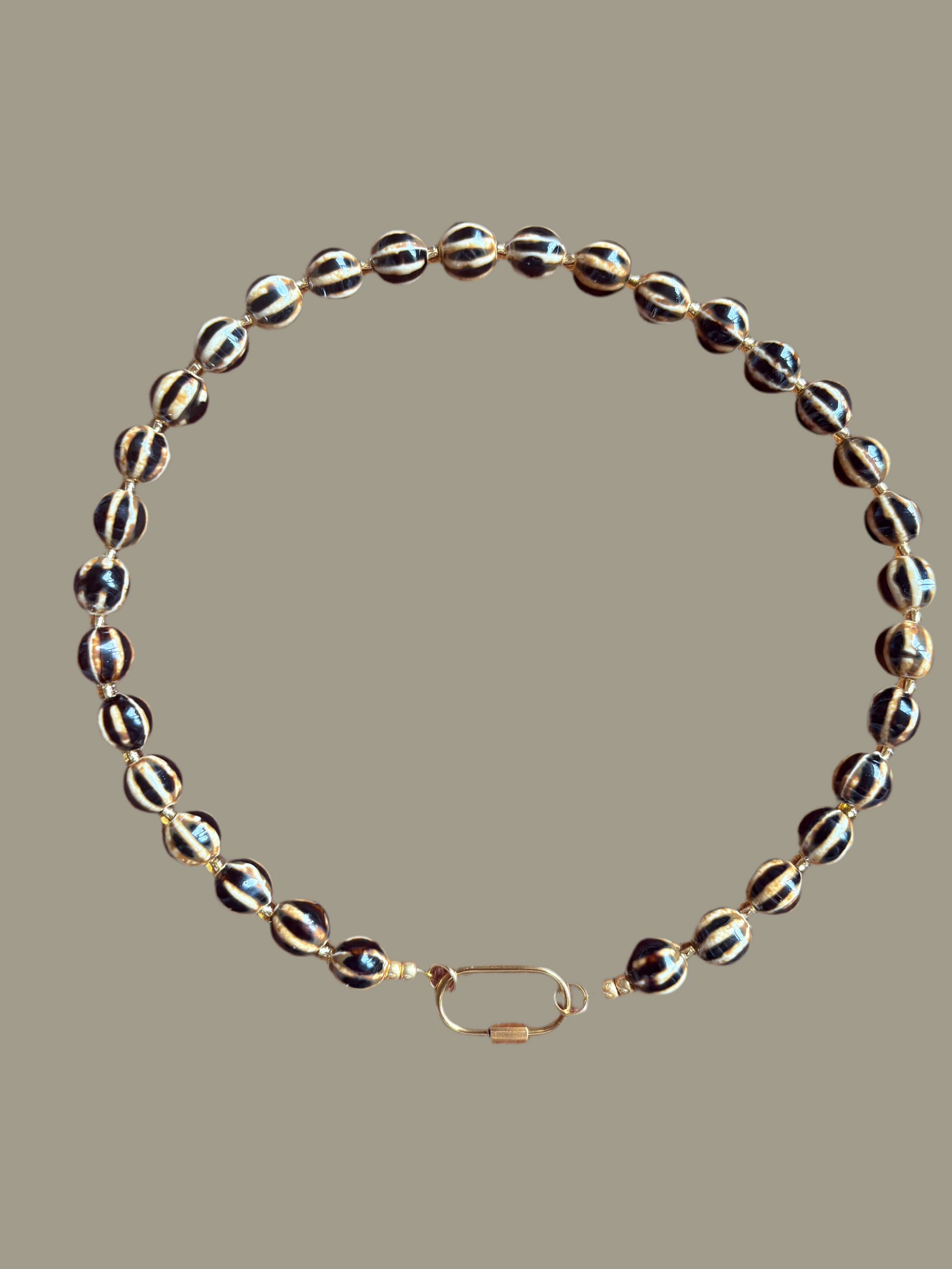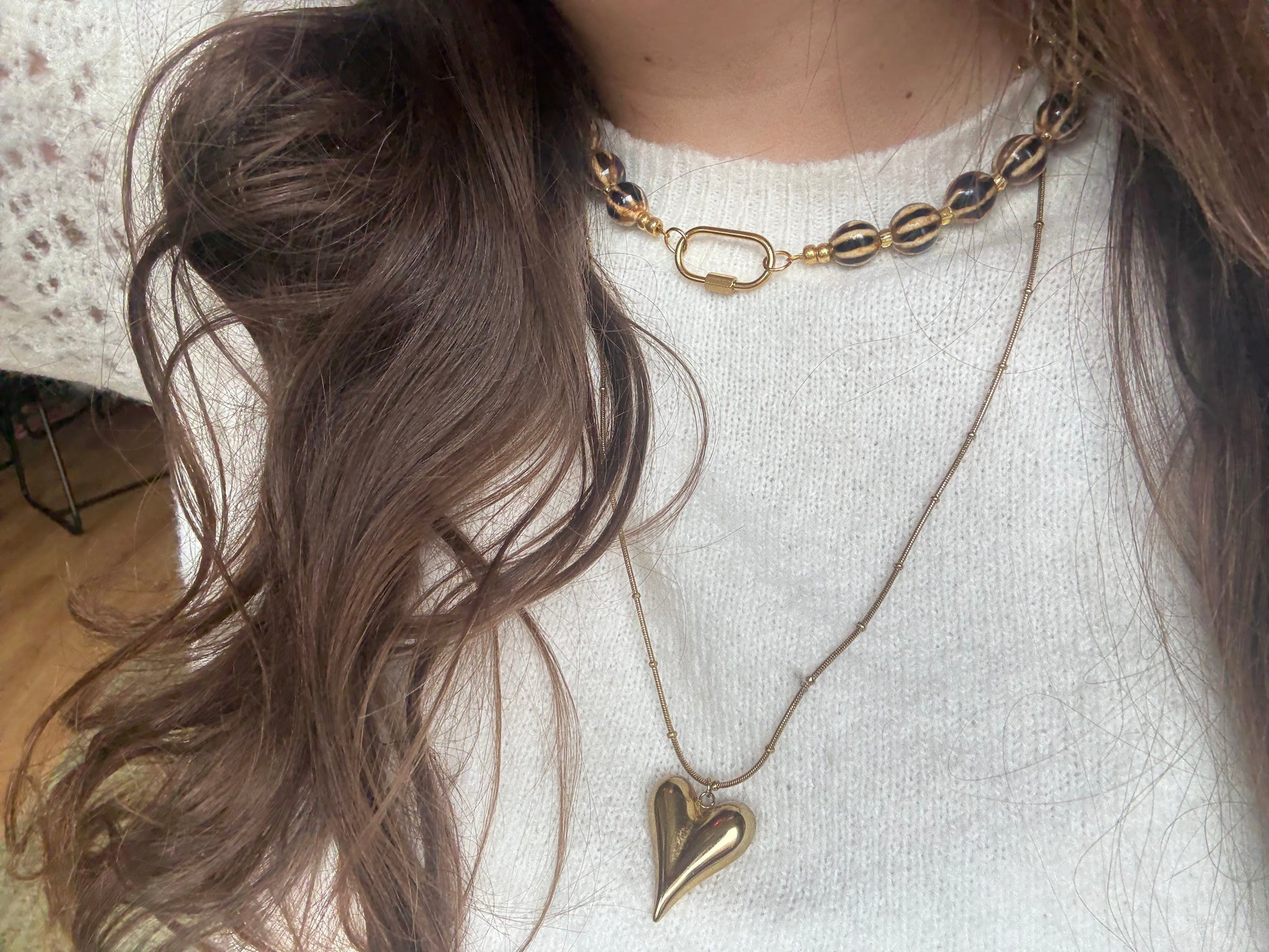 Mooie ketting gemaakt van keramieken pompoenkralen.