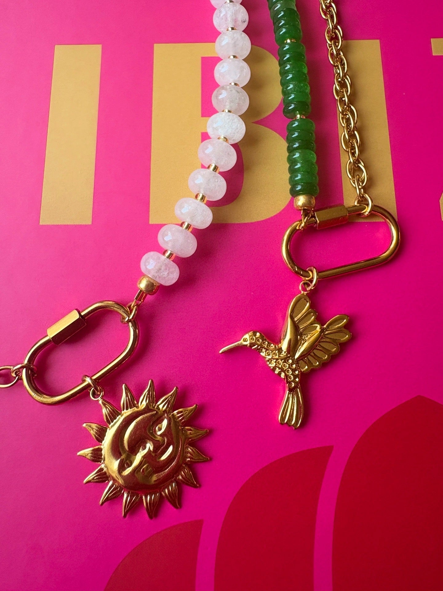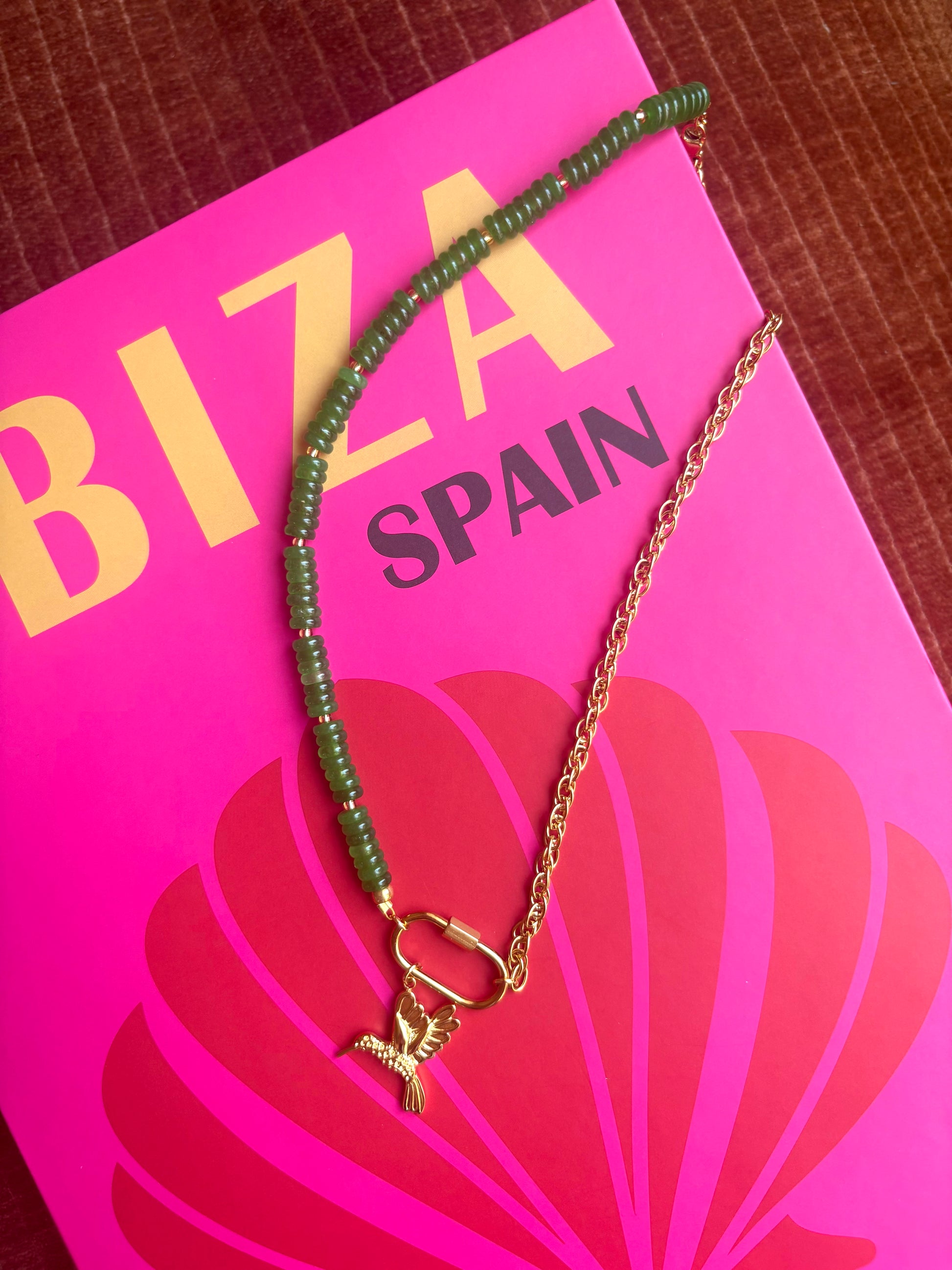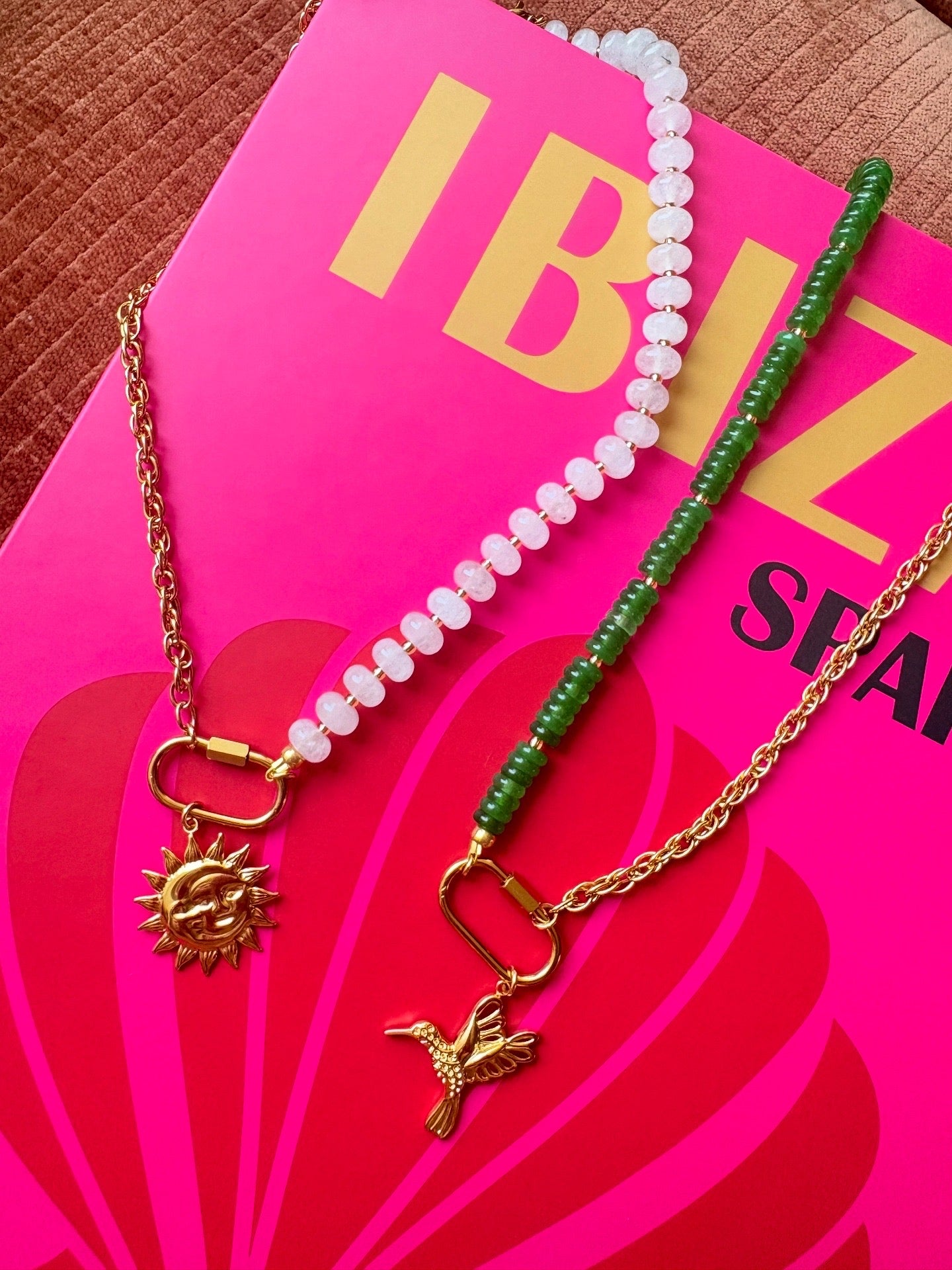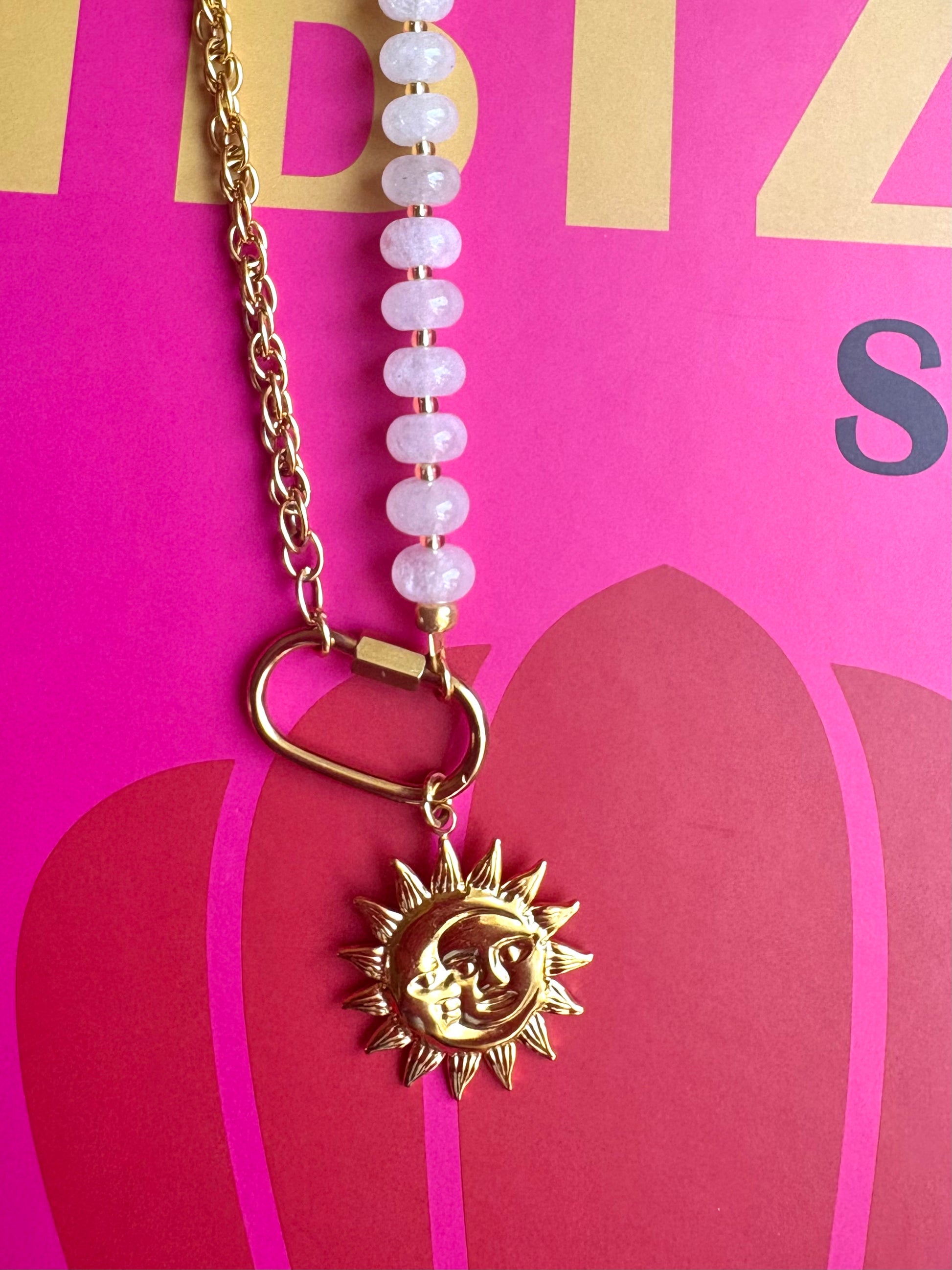 Prachtige ketting gemaakt van glaskralen en stainless steel schakels