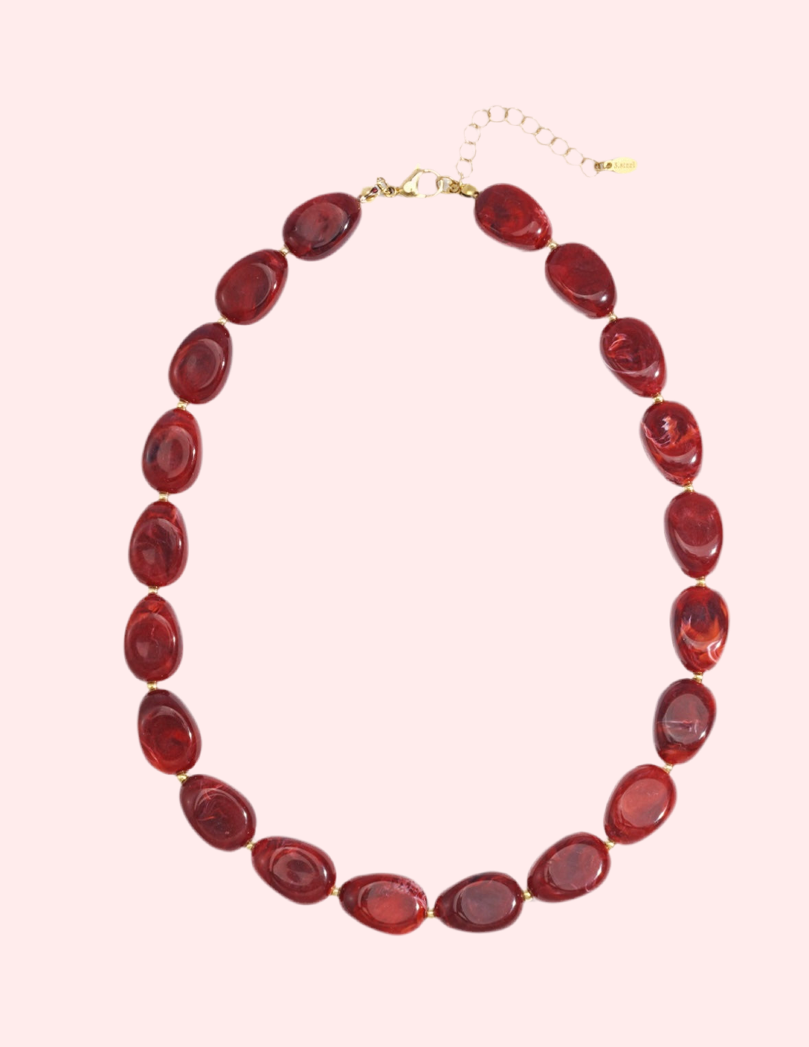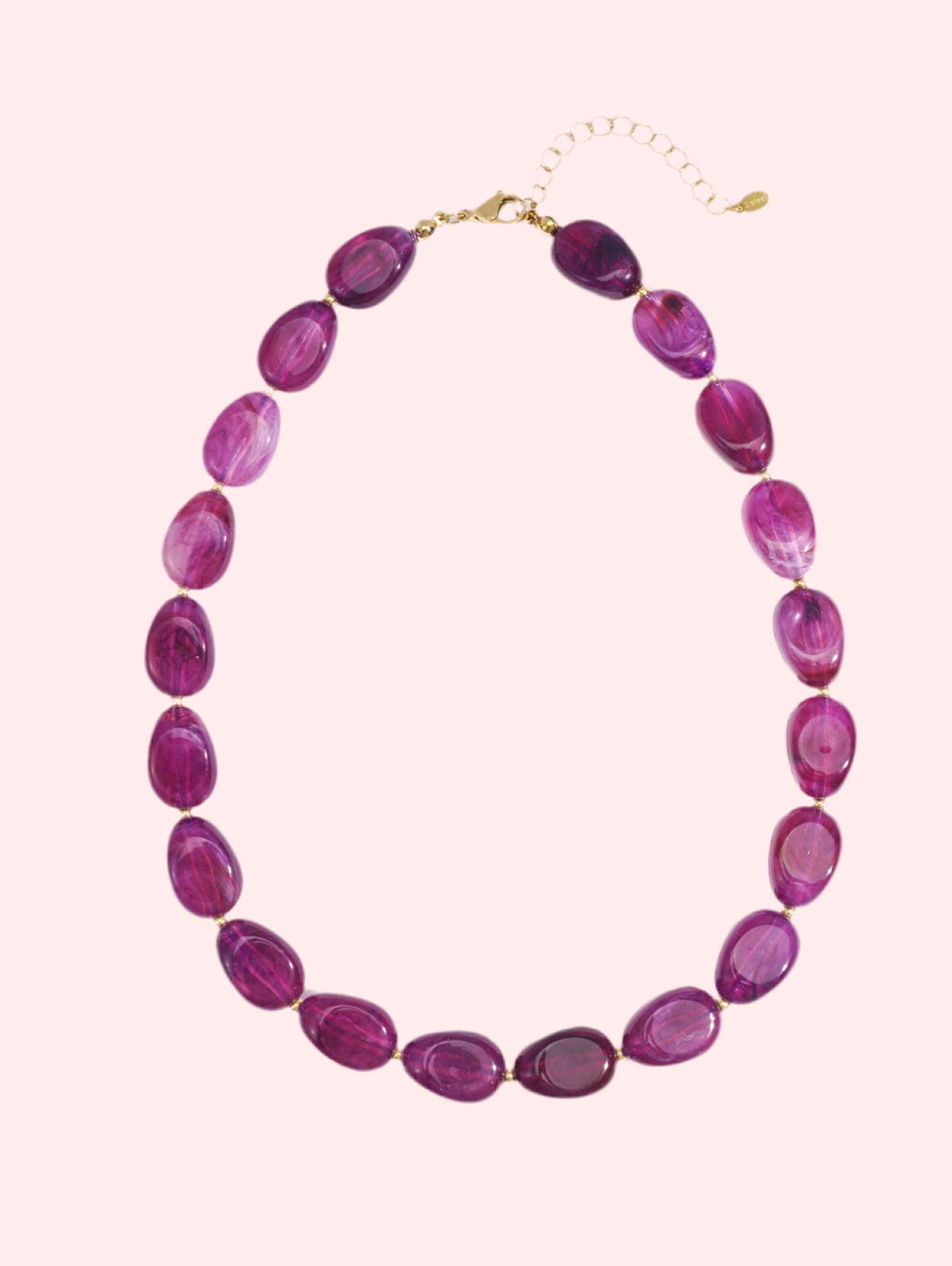 Mooie ketting gemaakt van acryl kralen en stainless steel details. 45cm