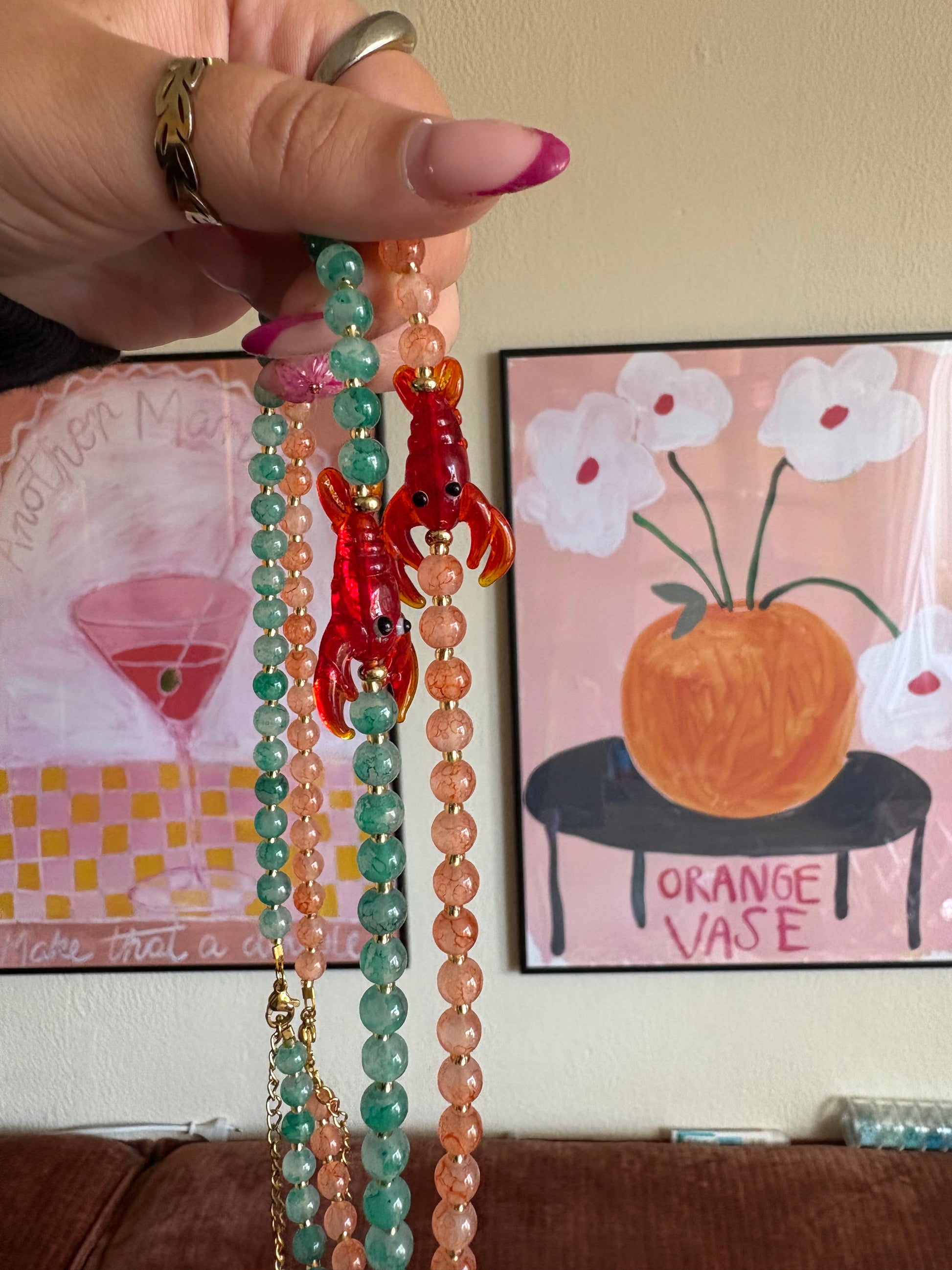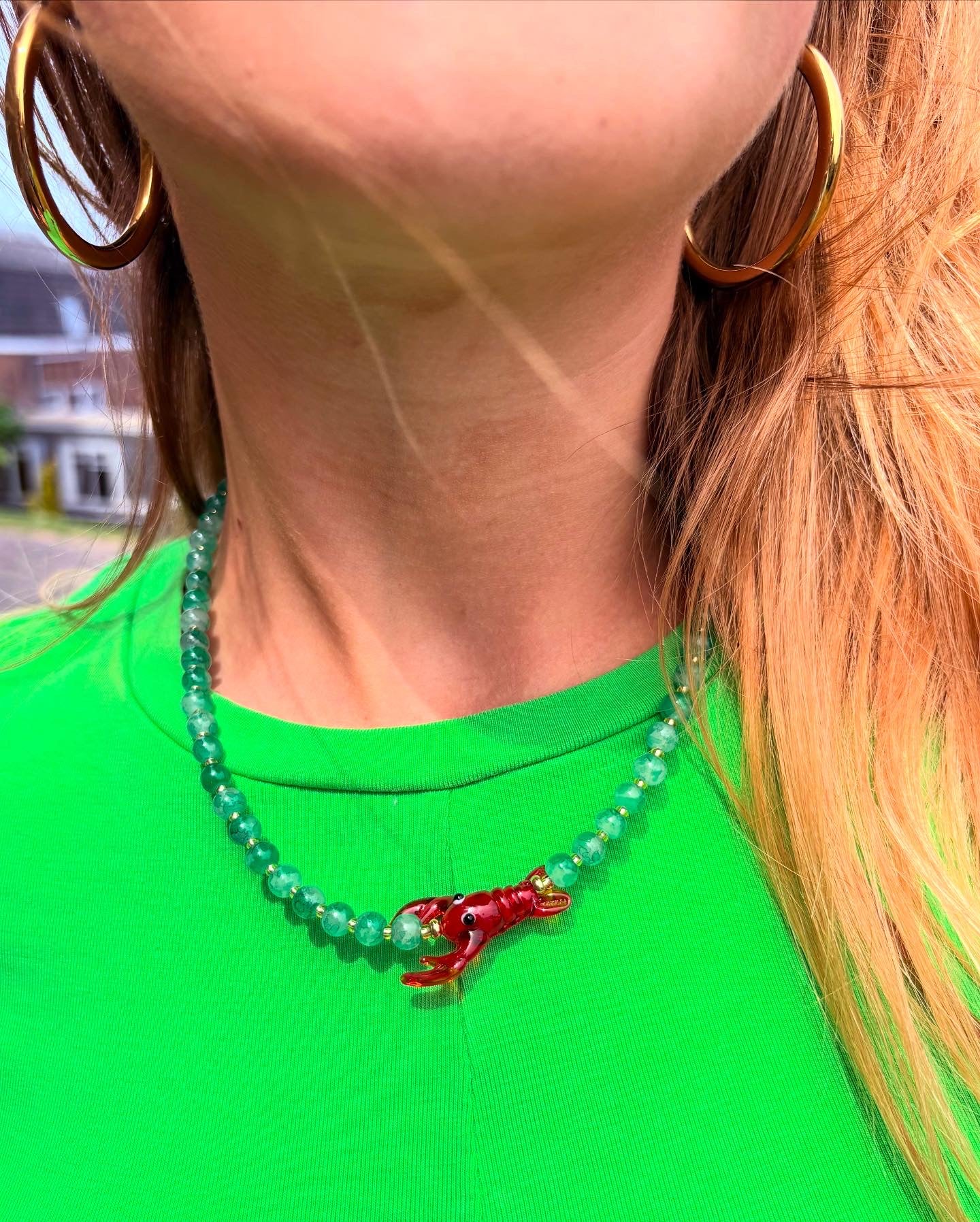 Onze glazen kreeft ketting brengt fun, flair en een snufje oceaanmagie samen in één superleuk accessoire! De vrolijke kreeft bedel is handgemaakt van glas en geeft elke outfit een speelse twist. Of je nu een echte zee-fan bent of gewoon van opvallende sieraden houdt – deze ketting is een catch!