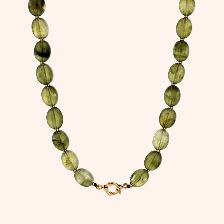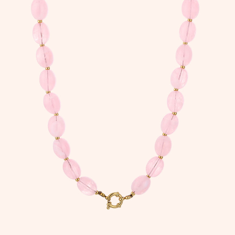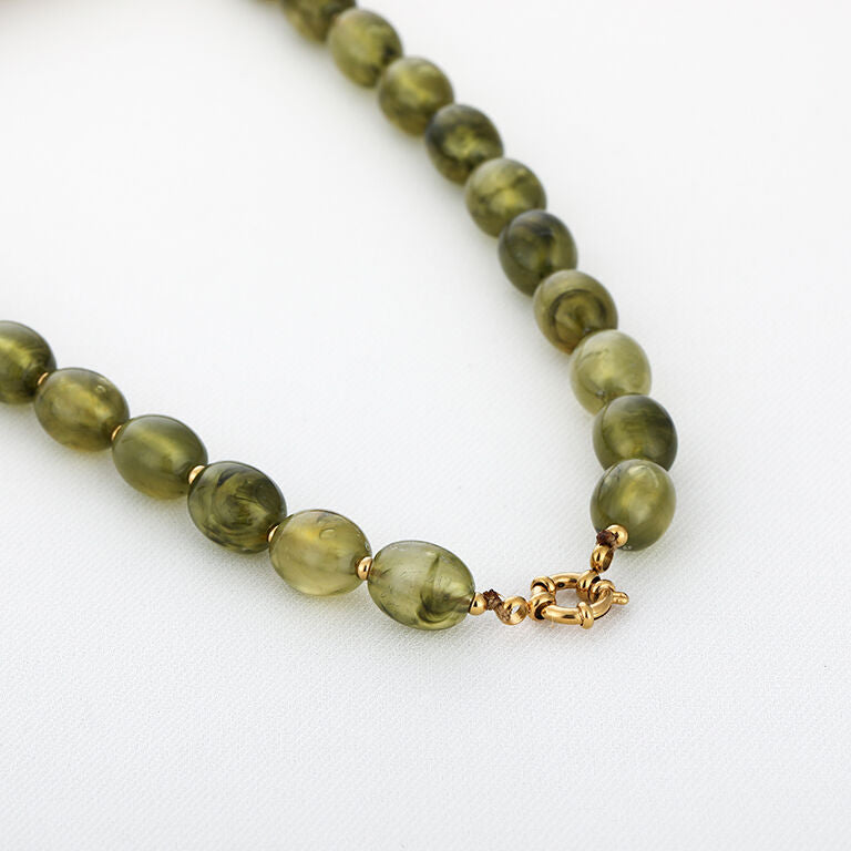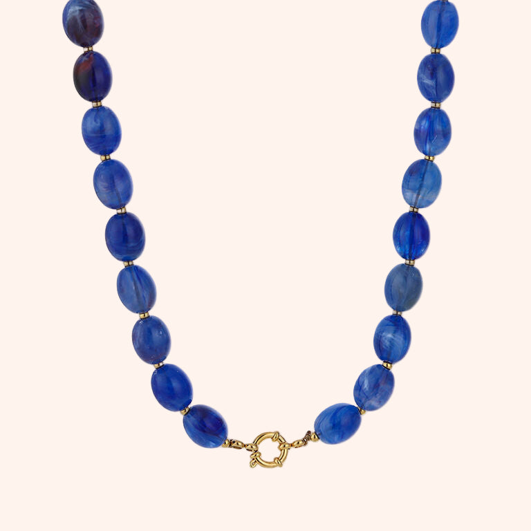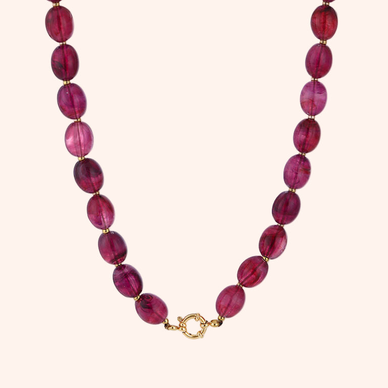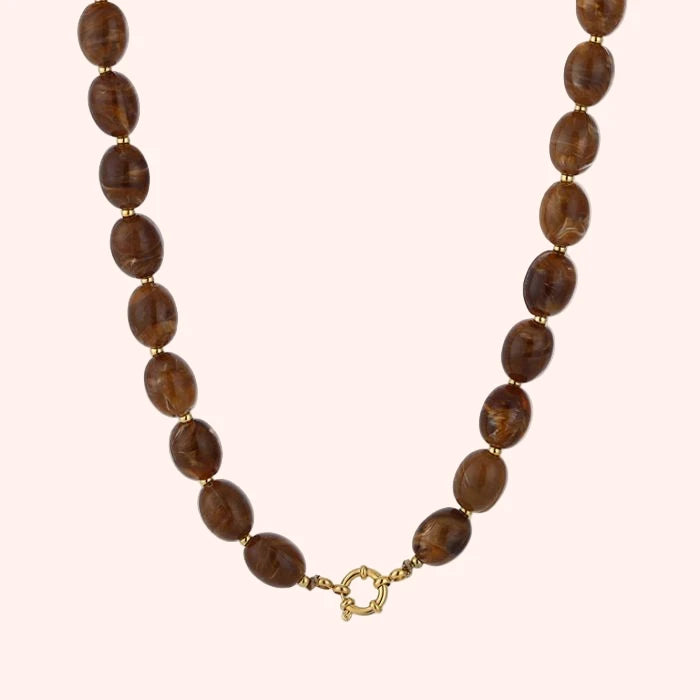 Prachtige ketting gemaakt van acryl kralen en stainless steel details. De ketting is uitgestrekt 46 cm.