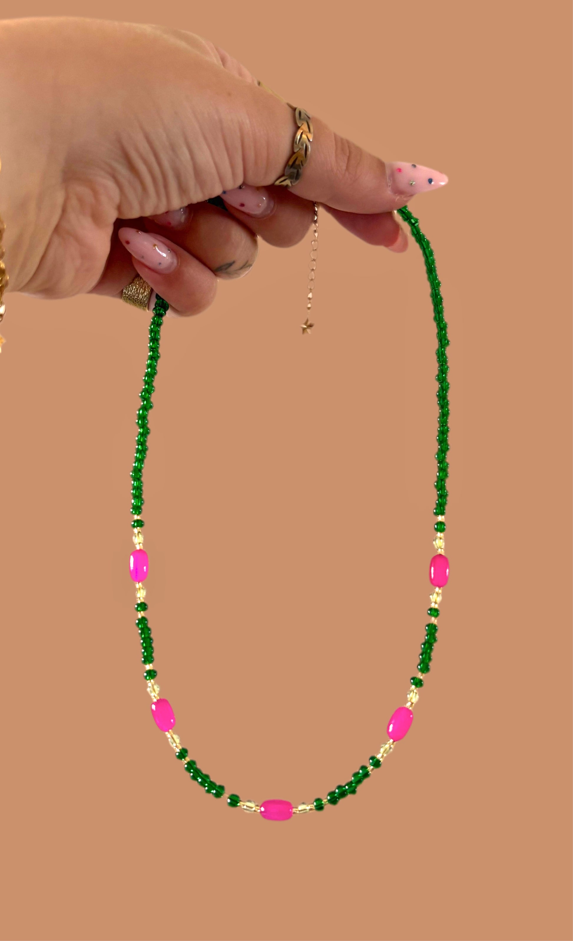 Mooie ketting gemaakt van glaskralen en stainless steel details
