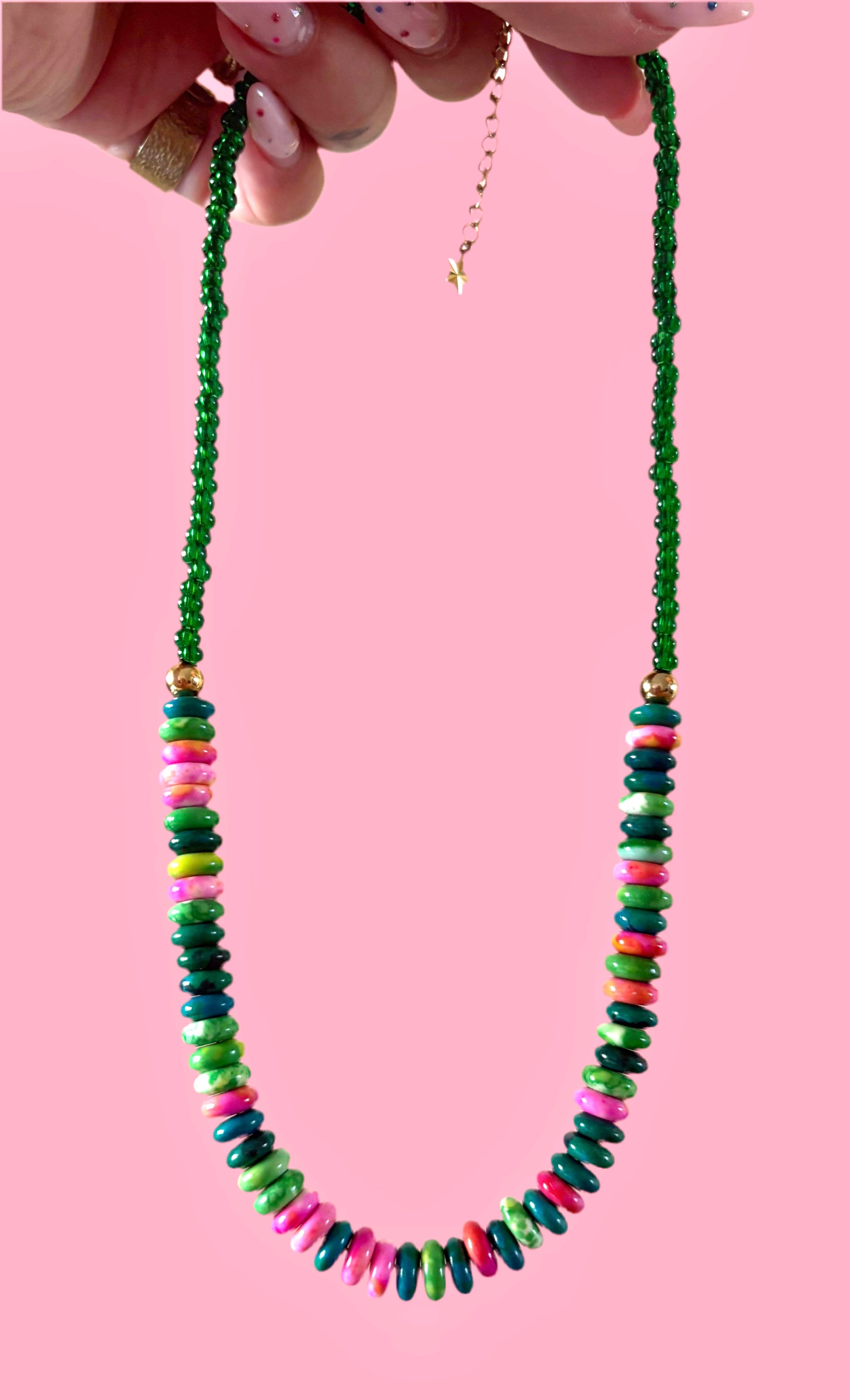 Mooie ketting gemaakt van glas en keramiek kralen.